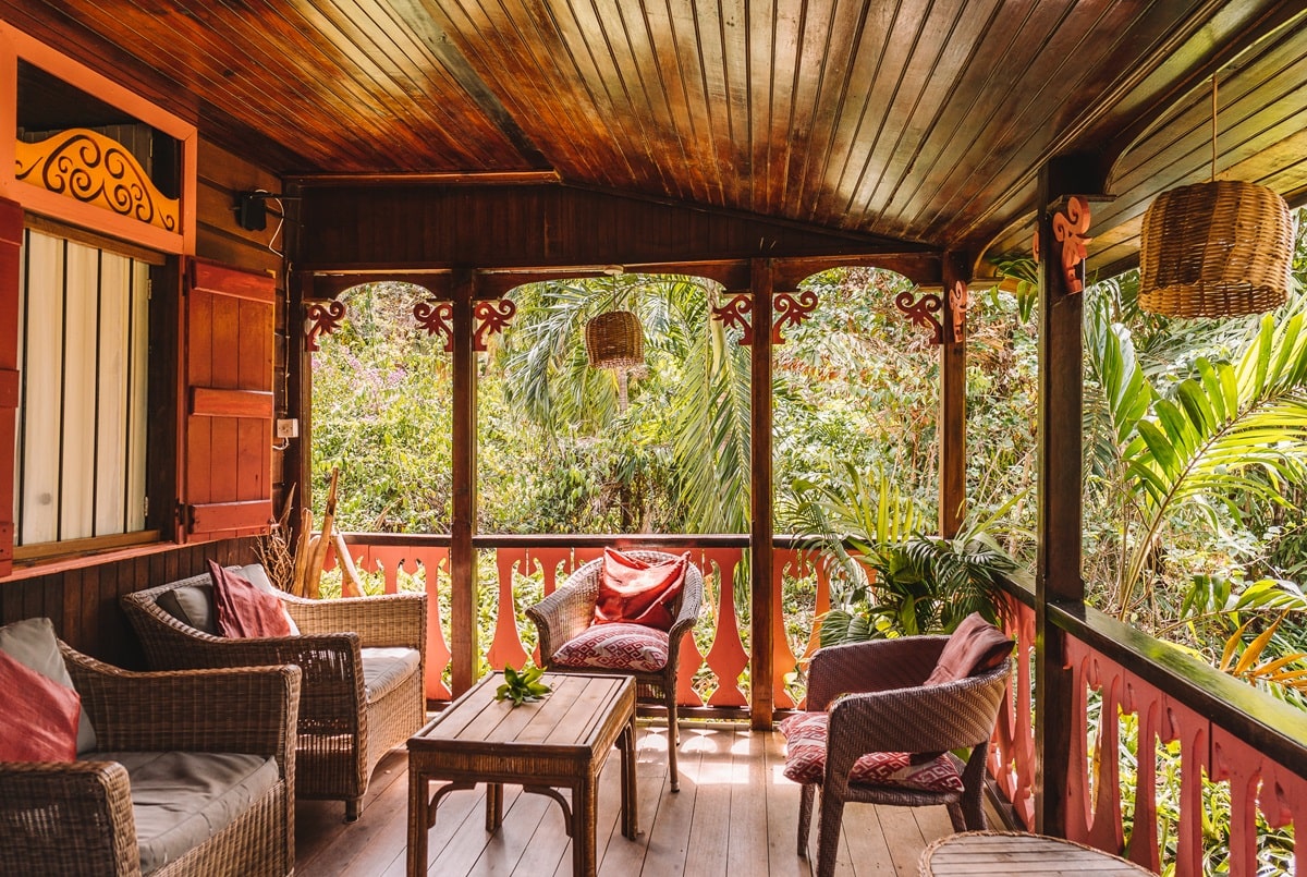 The historical Balenbouche Estate Guest House in St. Lucia features six eco-friendly vacation cottages nestled within a 70-acre nature heritage site adjoining two secluded beaches.