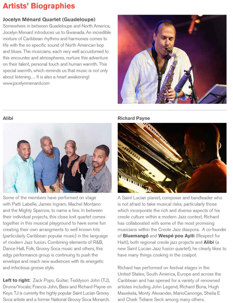 A Creole Jazz concert featuring Alibi (Saint Lucia) and the Jocelyn Ménard Quartet (Guadeloupe), will be held this next Thursday, 22 October, at Laborie’s Parish Hall.